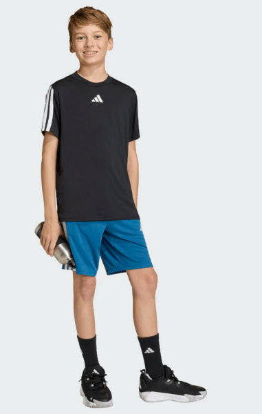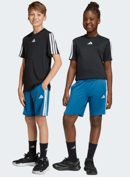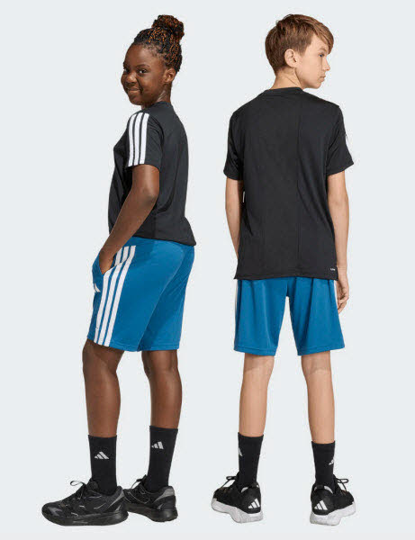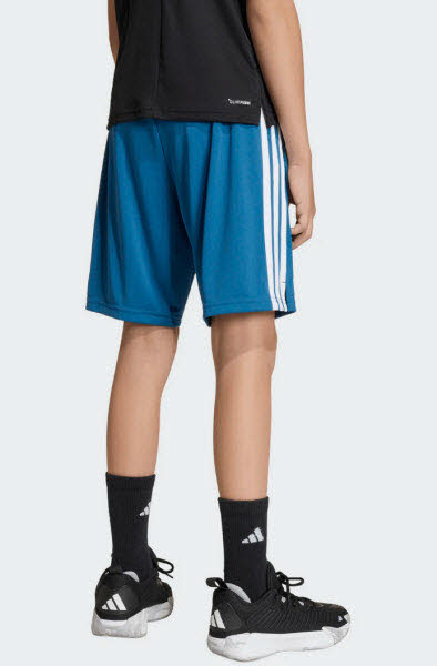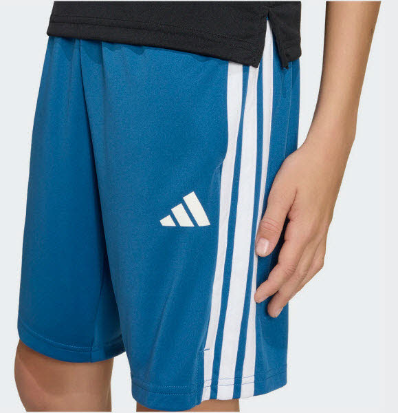 Mit diesen adidas Train Essentials 3-Streifen Shorts für Kinder und Teens bist du bereit für die Zukunft. Die schmale Passform und der etwas längere Schnitt geben dir volle Bewegungsfreiheit bei schnellen Sprints, Stretches und schweißtreibenden Übungen. CLIMACOOL leitet Feuchtigkeit von der Haut ab und sorgt für ein kühles und trockenes Tragegefühl - keine Ablenkung, nur Performance. Mit den 3-Streifen entlang der Seiten und dem 3-Streifen Logo am Bein zeigst du deine Begeisterung für adidas. Also die perfekten Shorts, um an deinen Skills zu feilen.