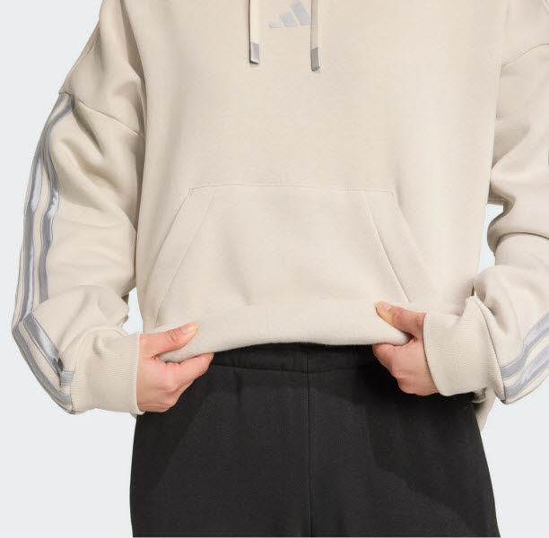 Dieser Hoodie von adidas aus weichem Fleece ist eine gemütliche Wahl, die sich perfekt für ein Gespräch am Kaminfeuer oder einen Winter-Spaziergang eignet und dich die ganze kalte Jahreszeit über bequem hält. Die legendären 3-Streifen in Metallic-Optik an den Ärmeln verpassen dem Design einen glanzvollen Touch. Ganz gleich, ob du es dir bei deinem Lieblingsfilm gemütlich machst oder draußen die festlichen Lichter bewunderst - mit diesem Hoodie bist du stilvoll unterwegs.
