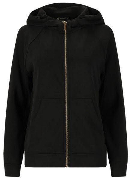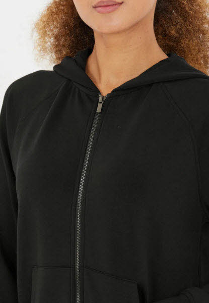 Die Kapuzenjacke „Jacey" ist die perfekte Wahl für sportliche Frauen, die Wert auf Qualität und Funktionalität legen. Dank des Materialmixes aus 51 % Polyester, 44 % Modal und 5 % Elastan bietet diese Jacke optimalen Tragekomfort, Atmungsaktivität und Bewegungsfreiheit. Mit ihrer kuscheligen Kapuze, dem durchgehenden Reißverschluss und den praktischen Taschen lädt sie zu entspannten und sportlichen Stunden ein.